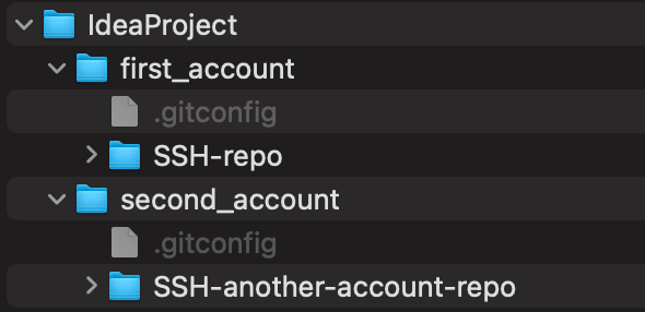 [includeIf "gitdir:~/IdeaProject/second_account/"]
